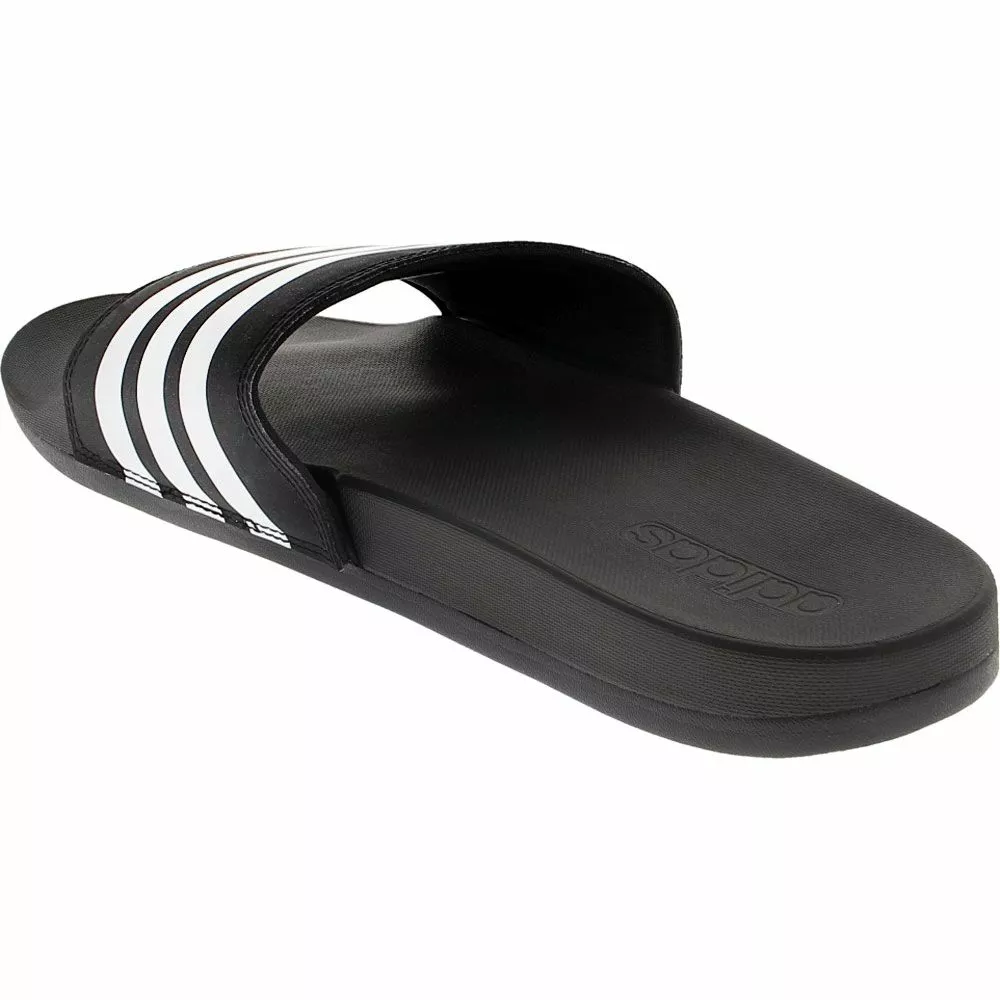Adidas Adilette Comforted Slide Sandals – Mens. Kick back and relax in these lightweight Mens athletic slide sandals. Easy to wear and easy to love, these ultra-comfortable slide-on sandals provide a relaxed and contoured fit with Adidas’ signature sporty style. Enjoy plush comfort in every step with the cushioning effect of Adidas’ Cloudfoam Plus footbed technology and shock-absorbing EVA outsoles. With a signature three-stripe synthetic upper strap and textile lining, these sandals are the perfect blend of comfort and style.