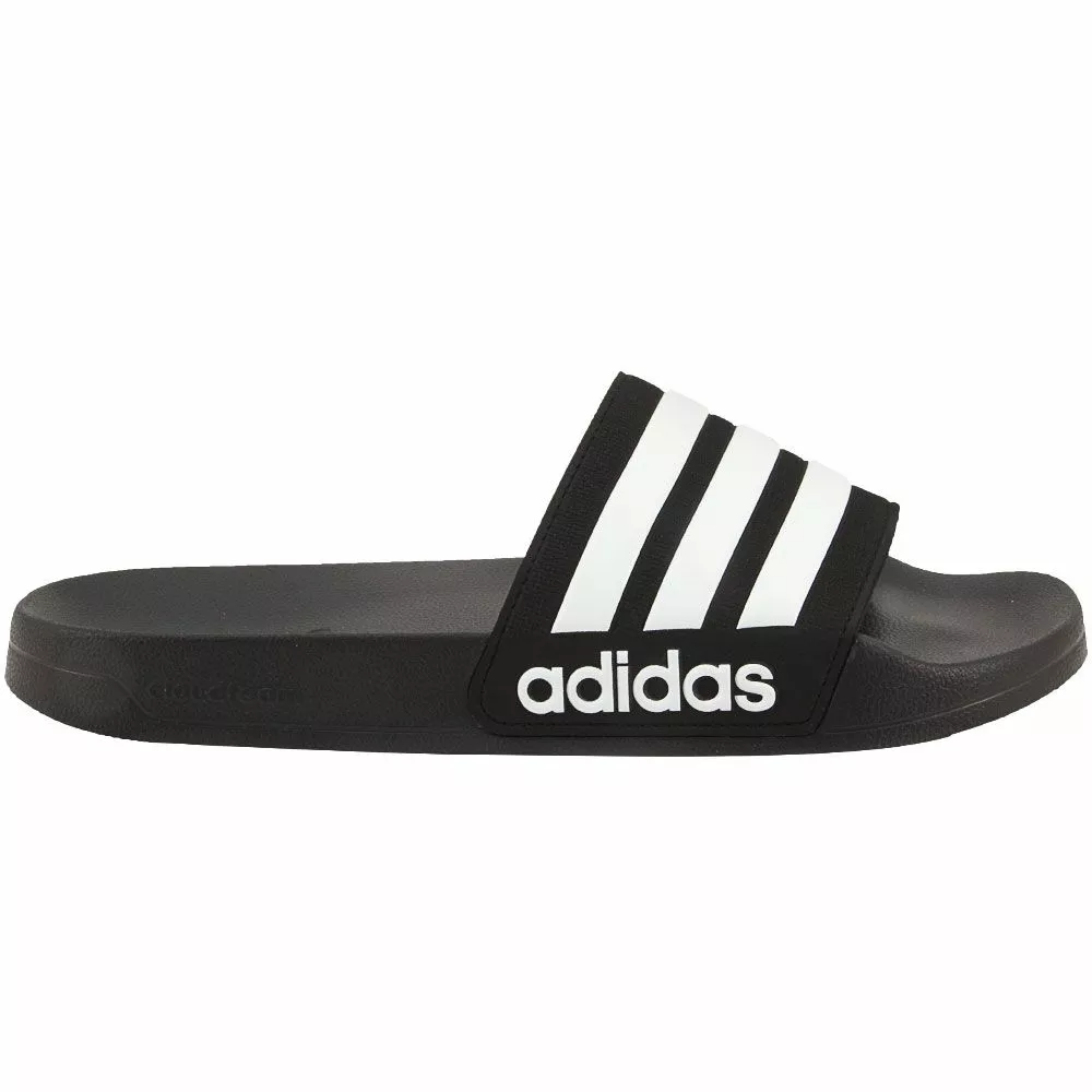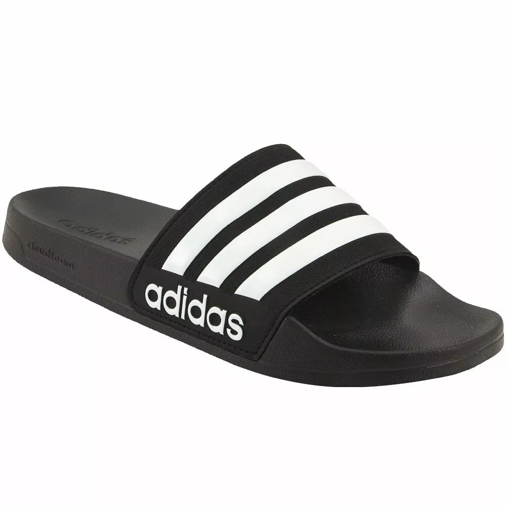 Adidas Cf Adilette Mens Slide Sandals. Perfect for the shower or pool deck, these mens slide sandals from Adidas can be counted on anywhere there’s water. The EVA outsole is lightweight, flexible and offers support on wet surfaces, while the single-bandage upper is both easy to slip into and easy to show off with the 3-Stripes icon across it. Cloudfoam technology makes the footbed both comfortable and quick-drying.