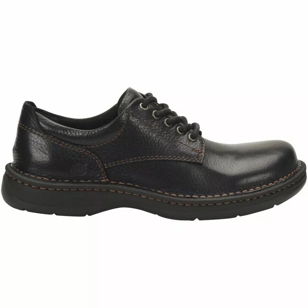 Born Hutchins 3 Lace Up Casual Shoes – Mens. Let these versatile mens casual shoes take you from work to the weekend. The durable upper is crafted from supple, hand-finished leather, and features a wide toe box for a roomy fit. Soft fabric covers the cushioned footbed and lines the shoe for superior, breathable comfort. The flexible, lightweight rubber outsole provides exceptional traction on indoor and outdoor surfaces. With the durability of Tru Opanka hand-crafted construction, these shoes may be your favorites for years to come.