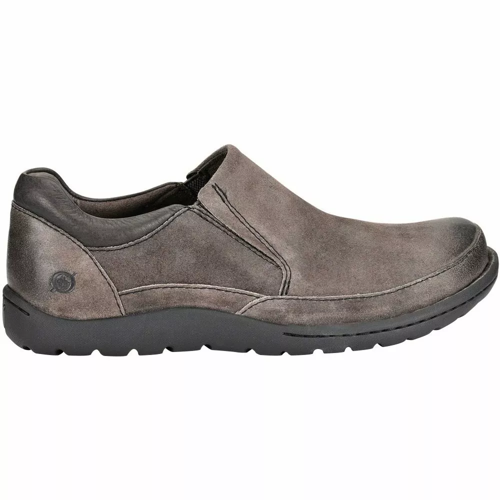 Born Nigel Slip On Casual Shoes – Mens. Look stylish and stay comfortable all day in a pair of these mens slip on casual shoes. Their classy, sophisticated silhouette hides a handmade construction designed to support and cushion every step. They have a genuine leather upper that is resistant to water and staining and features dual goring for easy wear. Microfiber lining and a cushioned footbed provide the soft comfort needed for long days on your feet. The durable outsole offers the traction needed for various conditions.