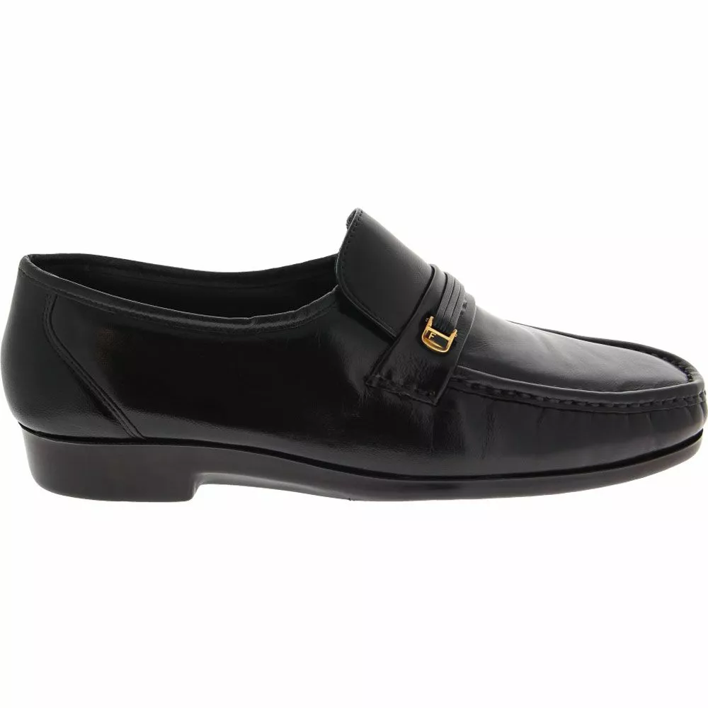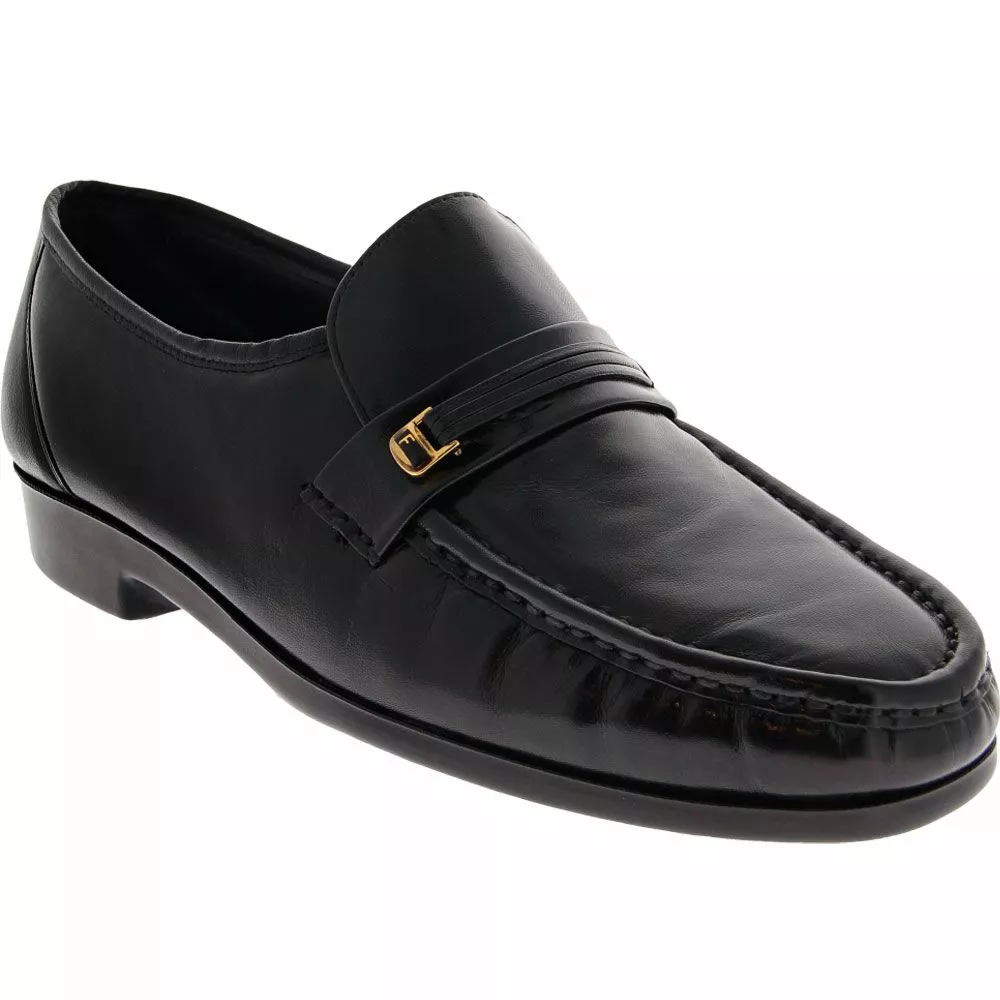 Florsheim Mens Riva Slip-On Dress Shoes. Wherever you roam, go in style with the Florsheim Riva dress shoe. Fully padded kidskin leather uppers keep a soft feel and a polished look around your foot. Leather lining and a fully cushioned footbed give you a comfy, cozy ride. Center gore slip-on and moccasin styling ensures instant flexibility and comfort. The Forefoot air flow zone allows air to circulate, keeping the foot cool and dry. The lightweight polyurethane sole has millions of microscopic air bubbles, making it both flexible and highly shock absorbent.