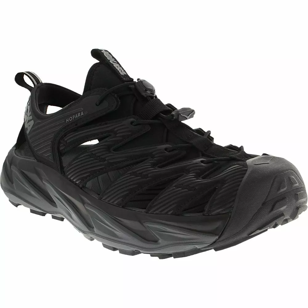 Hoka One One Hopara Outdoor Sandals – Mens. If you love to explore the great outdoors in rain or shine, then wear a pair of mens athletic sandals that are up for the challenge. The Hoka One One Hopara outdoor sandals feature a sticky rubber outsole and multidirectional lugs to provide great traction in a variety of conditions. Whether you’re on a flat, dry path or a wet, uneven trail, these sandals can handle it.