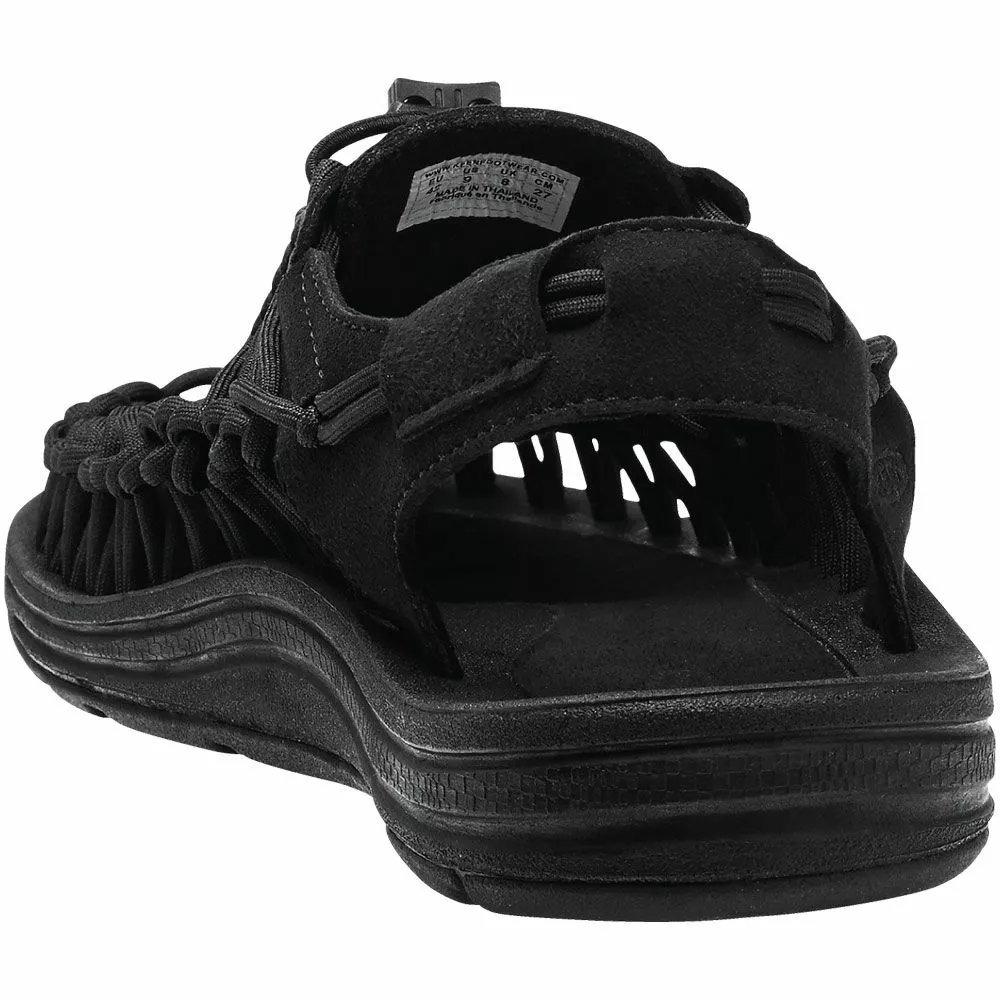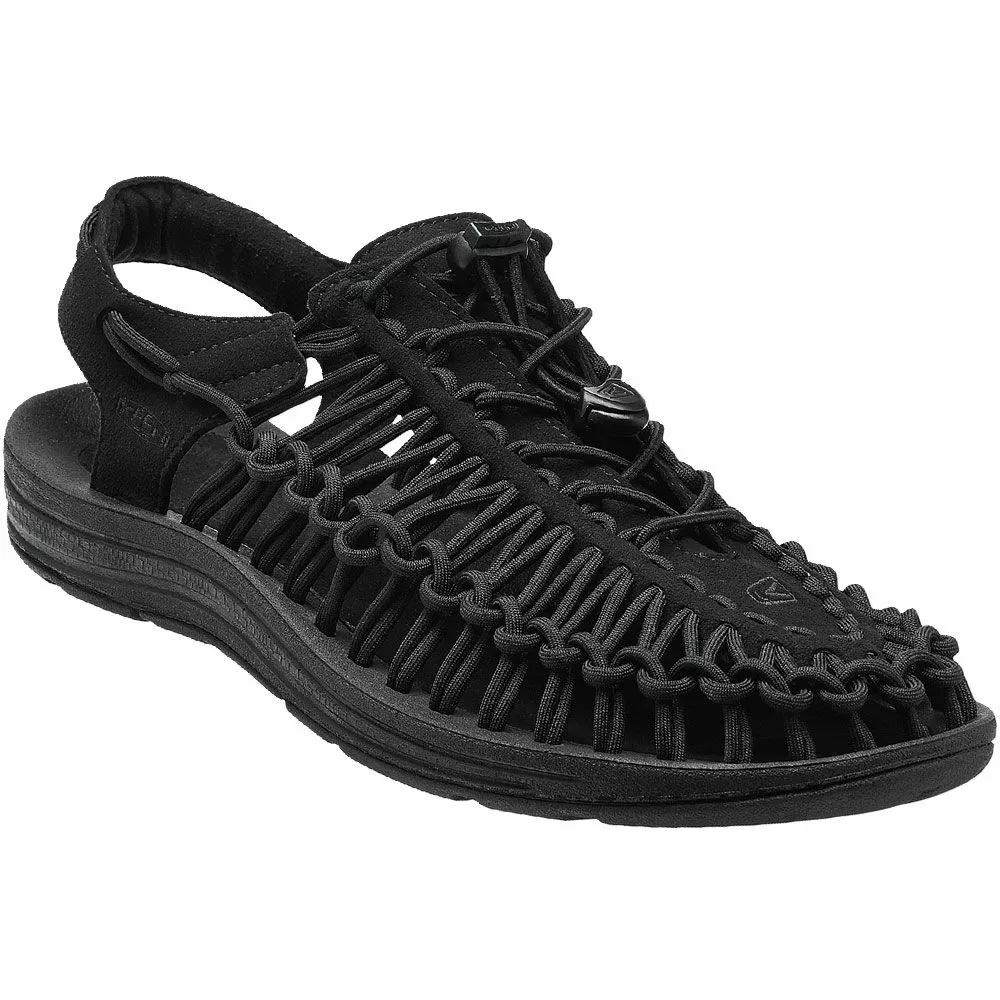 KEEN Uneek Monochrome Outdoor Sandals – Mens. KEEN’s Uneek Monochrome mens outdoor sandals turn heads, but there’s more to them than their distinctive look. The uppers feature a unique two-cord construction for superior strength, combining braided polyester cords with nylon cores. With the Uneek’s free-moving cord junction design, the uppers adapt to the shape of your feet. Metatomical footbeds and lightweight PU midsoles give you step-by-step comfort. Non-marking rubber outsoles feature razor siping for wet surface traction.