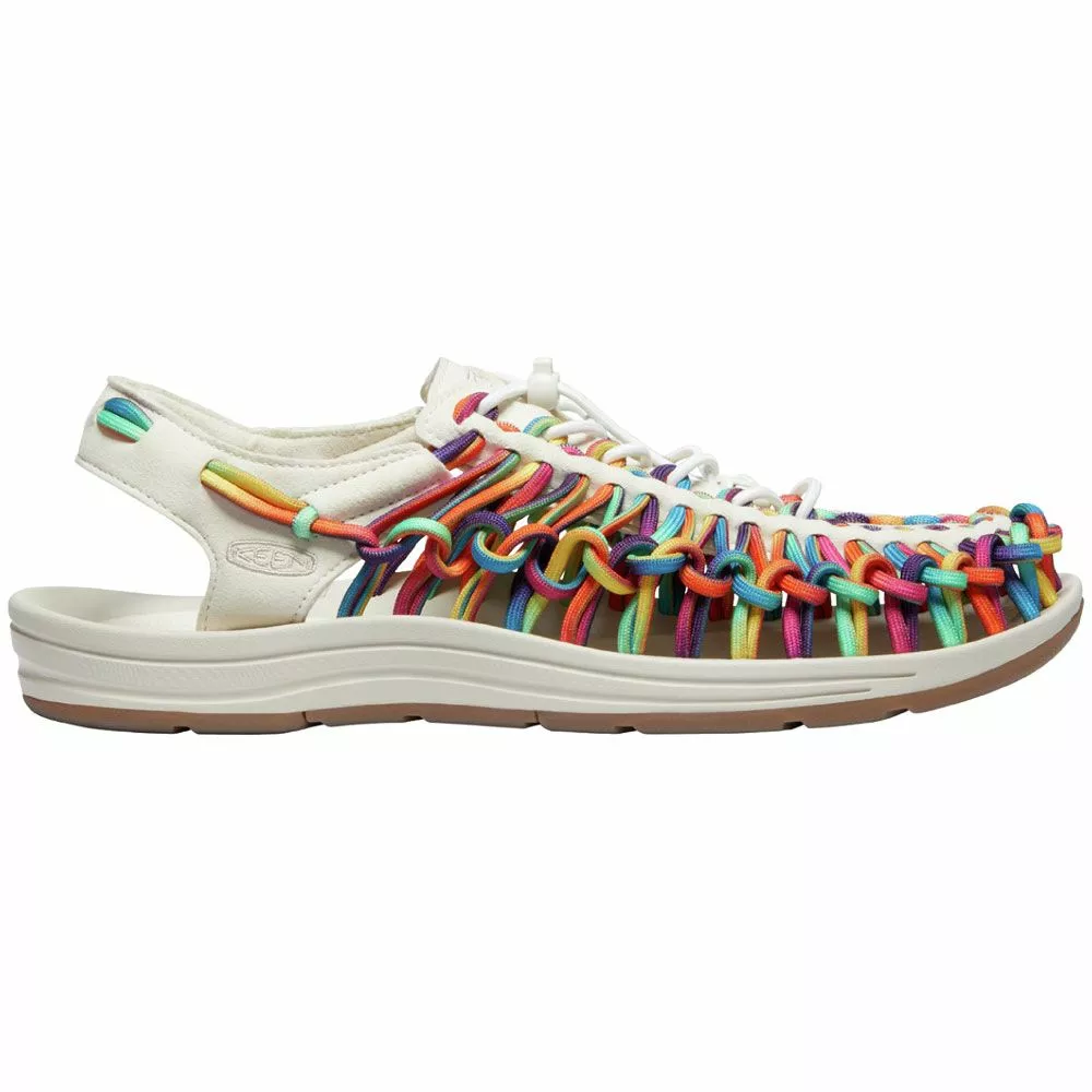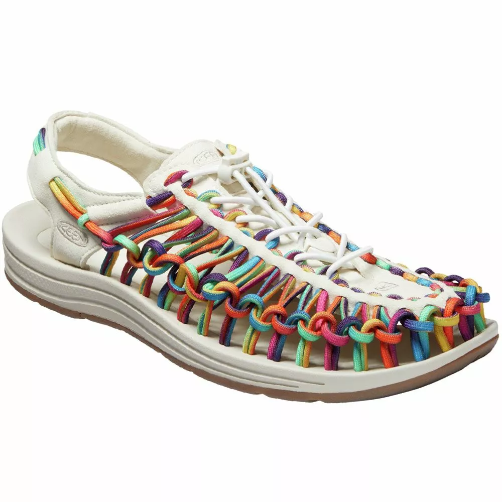 Trek through the woods in this pair of comfortable and functional Keen mens sandals. The razor siping on the outsole gives you plenty of traction. Braided cord is strong enough to handle the flexible movements of your feet as you hike or climb. These shoes keep your feet comfortable with the metatomical footbed, microfiber footbed cover and microfiber heel back. Remove excess dirt with a brush and hand wash.