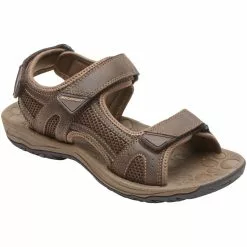 Nunn Bush Rio Grande O Toe Fish Mens Sandals. Prepare for fun in the sun with these mens sandals from Nunn Bush. The classic open toe design boasts all-day comfort from heel to toe: the faux-leather upper features breathable mesh panels, the hook-and-loop closure ensures a good fit, and the footbed is made of molded memory foam treated for odor control.