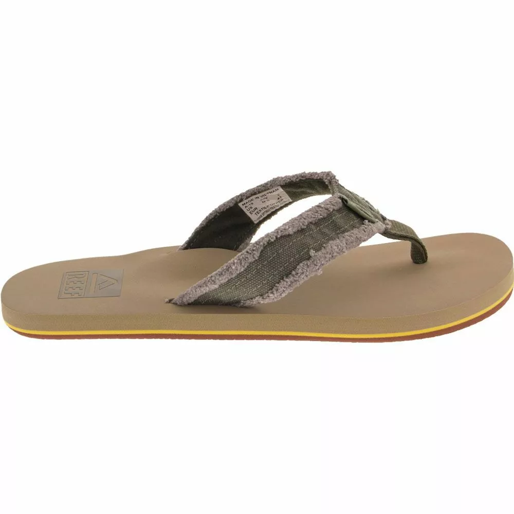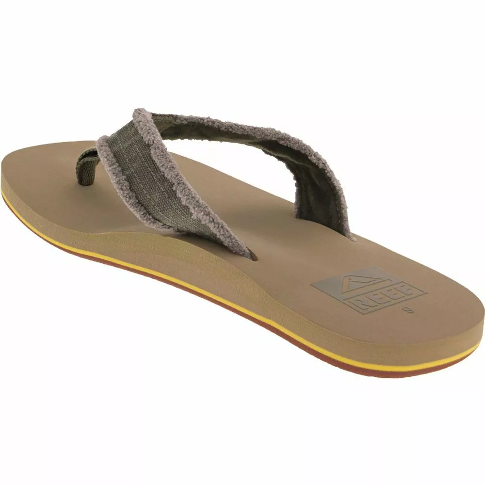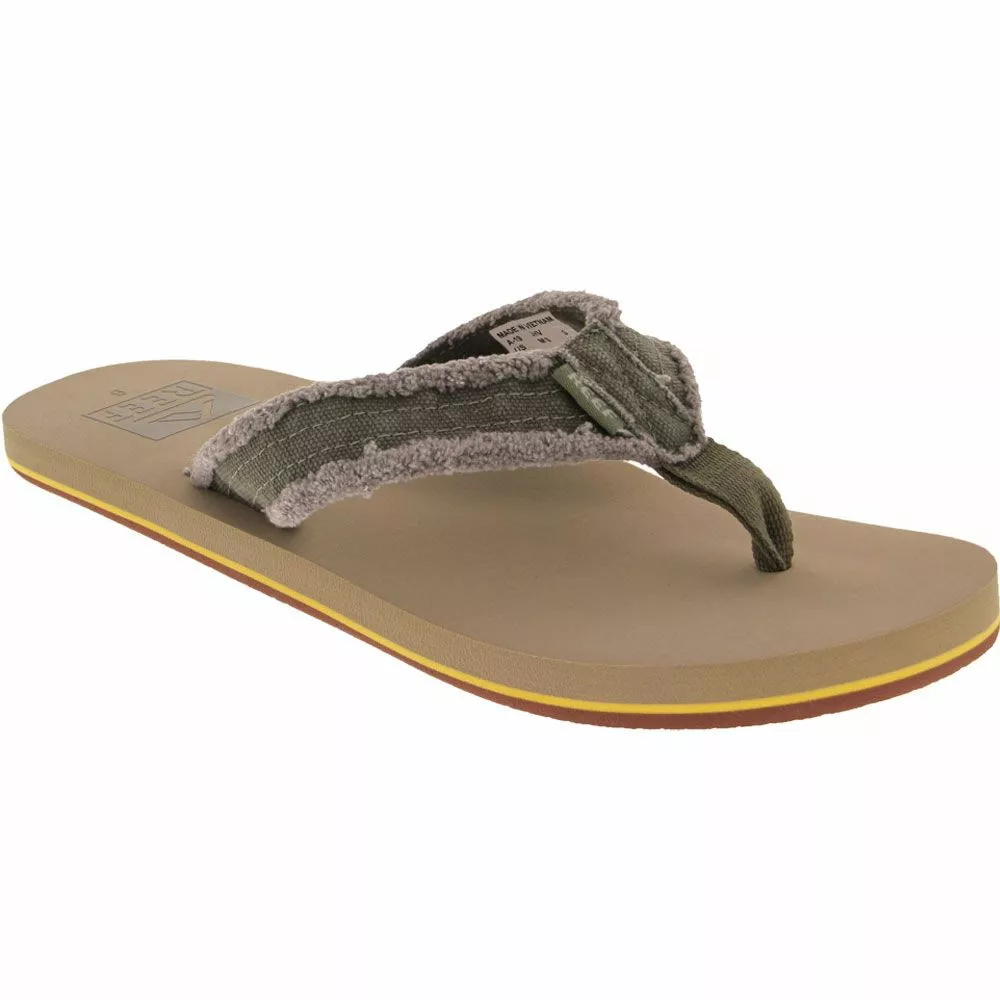 Reef Twinpin Fray Mens Flip Flops. Step into vintage style and timeless comfort when you start off your outfit with the Twinpin Fray Sandal by Reef. This classic beachy selection keeps you comfy all day, with a triple-dense EVA footbed and ideal support for your arch. The jersey lining promotes breathability, while soft-touch frayed material enhances the feel of the textile footstrap at each step.