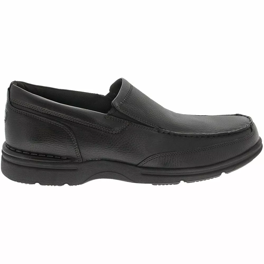 Rockport Eureka Plus Slip On Mens Casual Shoes. Smart, stylish and designed for comfort, Rockport’s Eureka Slip On is a quality choice for any business-casual setting. It features authentic leather upper construction, with stretch goring for a reliable fit and a cushioned insole for lasting support. A rubber outsole maintains slip-free performance on multiple surfaces, while the padded tongue and collar ensure ideal comfort, even during long days on your feet.
