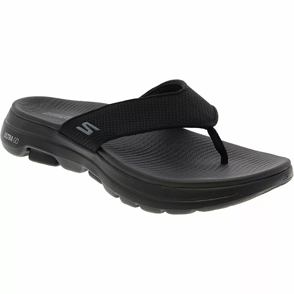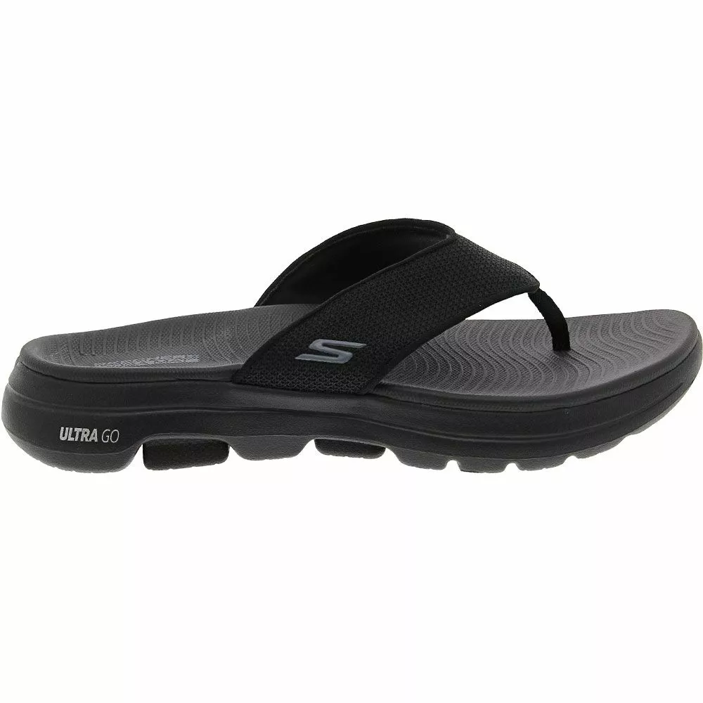 Skechers Go Walk 5 lango Sandals – Mens. These casual mens sandals are designed with comfort in mind. The Skechers Men’s GOwalk 5 – lango sandals are made with Ultra Go cushioning and Goga Max contoured footbeds to provide a lightweight cloud-like experience. Skechers uses Comfort Pillar Technology for additional support and long-lasting comfort for all-day wear. With high-stability rubber outsoles, these sporty thong sandals will be your go-to casual shoe every time you leave the house.