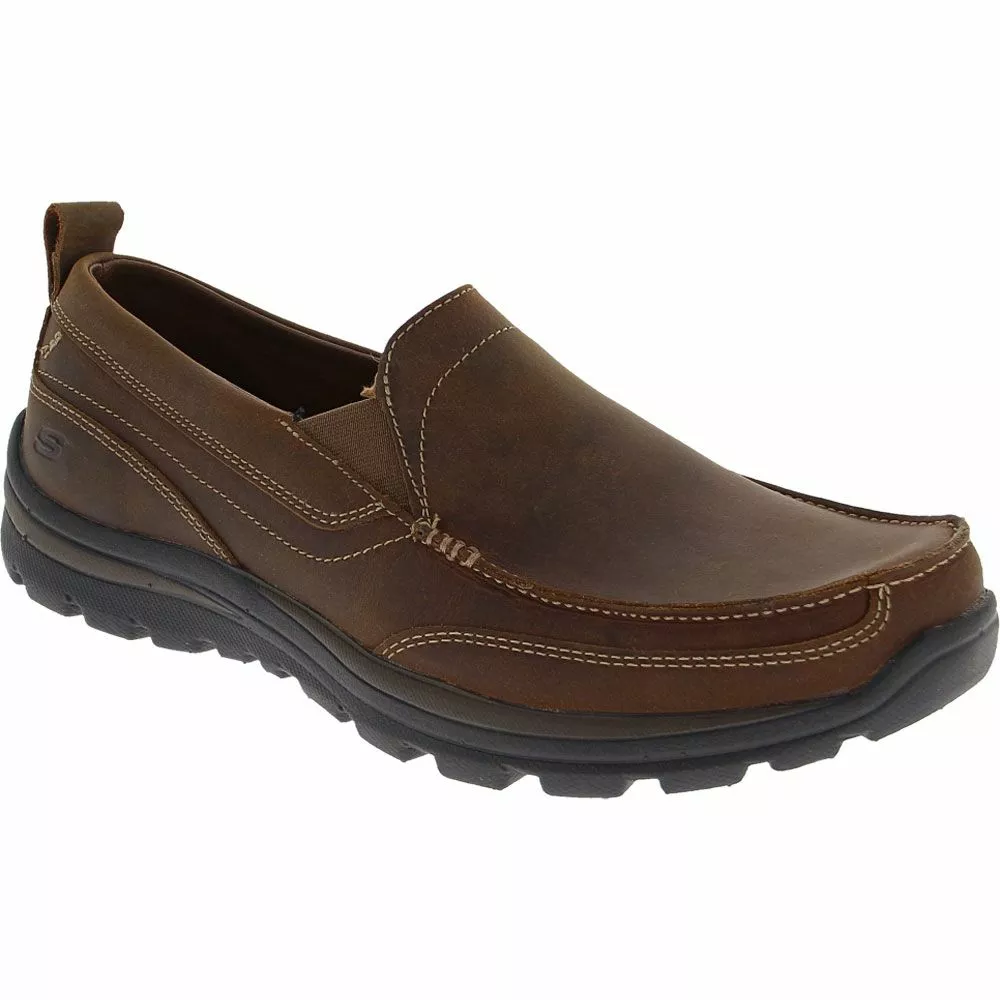 Skechers Superior – Gains Men’s Casual Shoes. Upgrade your casual shoe style with the Skechers Superior – Gains loafer. The matte leather upper and soft fabric lining make for a comfortable fit every time. Elastic gore panels allow for easy-on easy-off access. Memory foam and cushioned insole provide added comfort. The flexible traction outsole allows you to have superior traction and support.