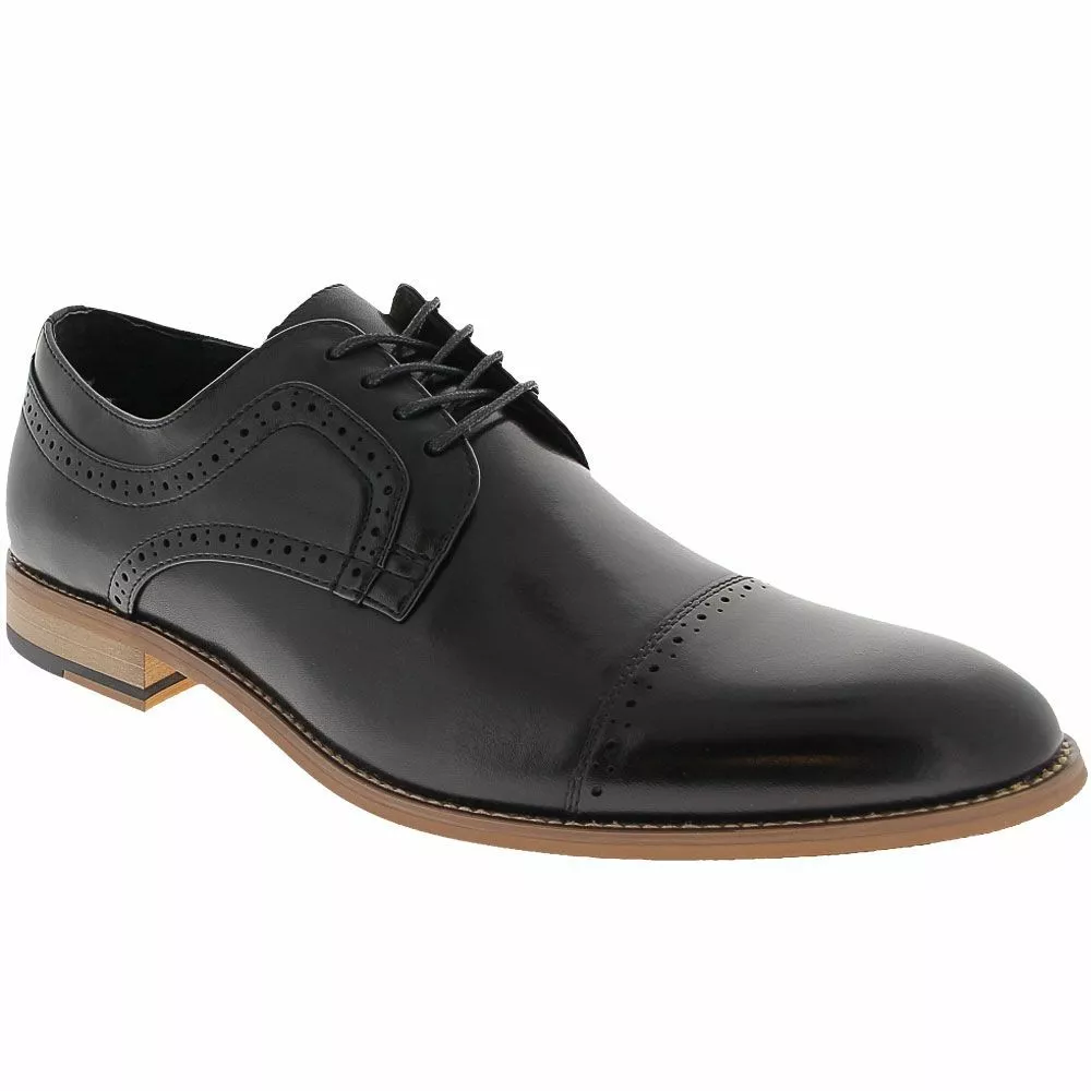 Stacy Adams Dickenson Oxford Mens Dress Shoes. The antiqued leather design of the Stacy Adams Dickenson Oxford Mens Dress Shoes leave quite a lasting impression. These cap toe Oxfords have classic styling The leather upper and lining and the perforated detailing truly reflects the fine craftsmanship Stacy Adams has been known for over the past 100 years.