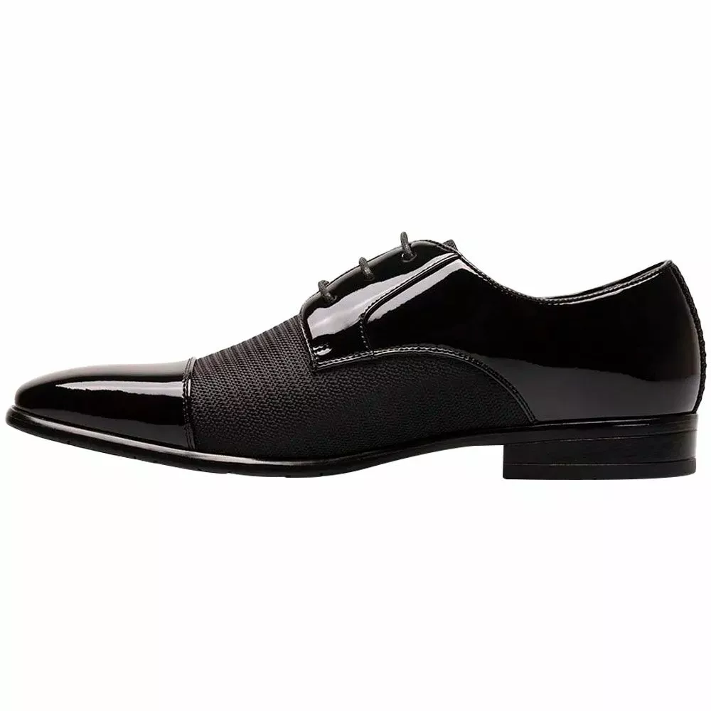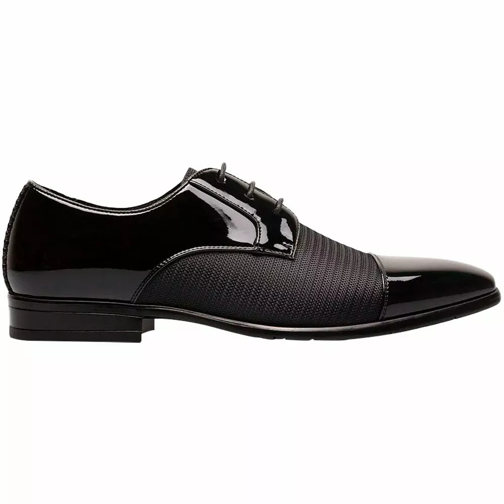 These mens dress shoes have so much style they almost hurt the eyes. Check out that knit vamp with a patent leather cap toe and the patent leather. The contrast is stunning in its simplicity. Wear them to your cousin’s wedding and then wear them to your own. A memory foam insole provides all day comfort.