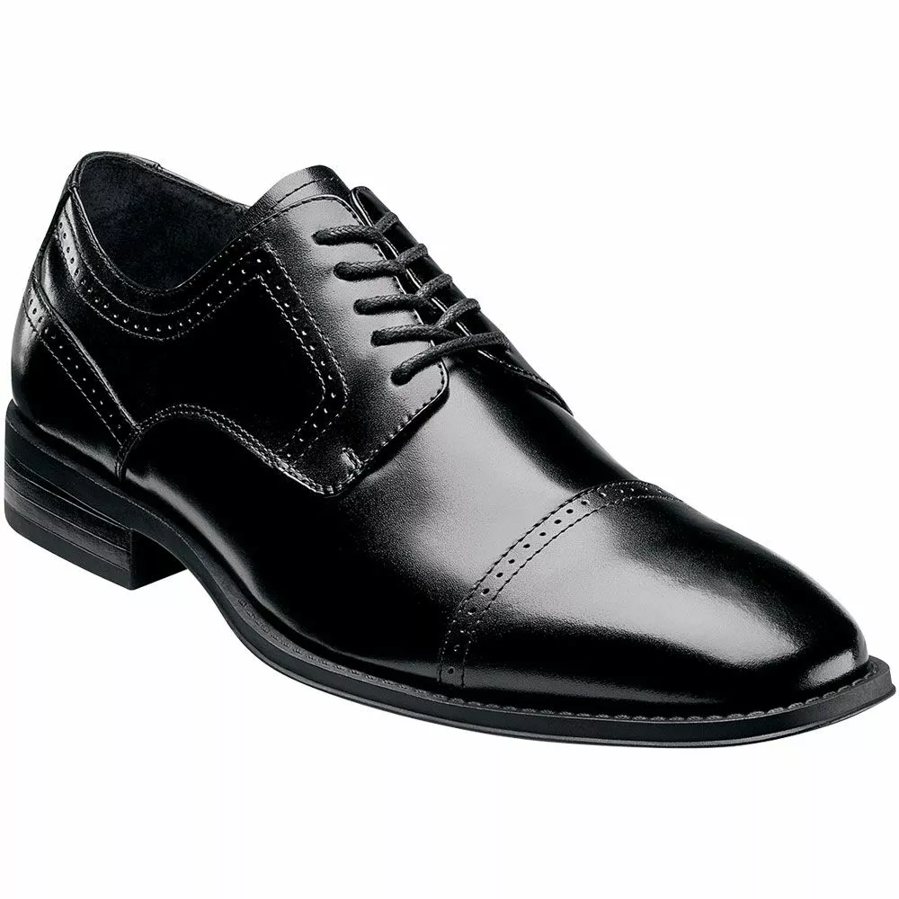Stacy Adams Waltham Oxford Mens Dress Shoes. You’ll be turning heads while you wear the Stacy Adams Waltham Oxford. The upper is leather and has a lace up closure. There is stitch detailing on the leather to add extra flair to the cap toe design. There is a soft leather lining in the shoe as well as a lightly cushioned footbed. The outsole is man made and has a small stacked heel.