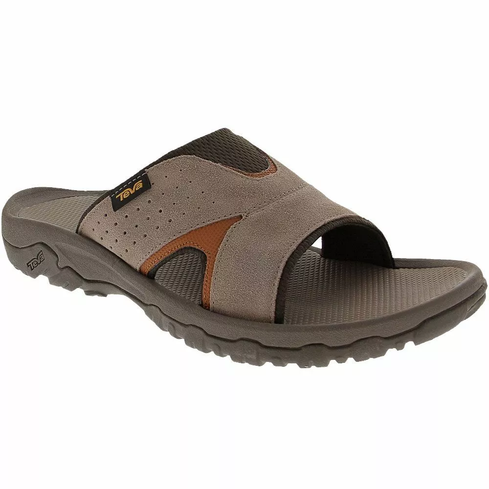 Teva Katavi 2 Mens Slide Sandals. Sleek and lightweight, these mens slide sandals are a modern take on a traditional Teva design. The suede upper is easy to slip into and wear throughout your adventure, as well as easy to care for. With arch support, durable traction outsoles and stability-boosting nylon shanks, the Katavi 2 Slide lets you find your footing anywhere along the trail.
