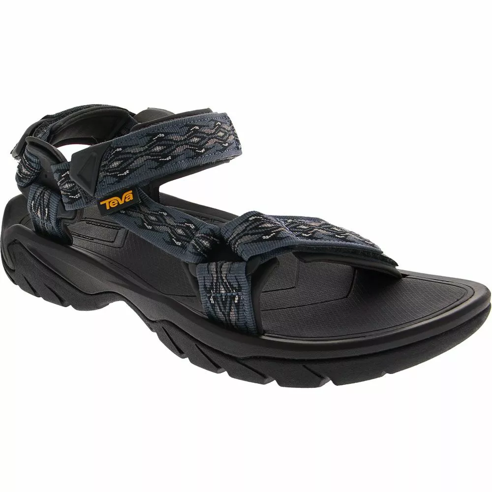 Teva Terra Fi 5 Sandals – Mens. High adventure on warm days is made a little easier in these mens outdoor sandals. They provide the support needed to tackle the toughest hikes. They feature vegan breathable synthetic materials that keep feet dry and comfortable. When faced with uneven terrain, their TPU shank construction stabilizes each step while the durable outsole provides optimal grip in various terrains. An adjustable hook-and-loop closure makes getting the right fit easy.